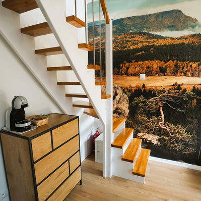 Antresola z łóżkiem podwójnym i pojedynczym i komodą